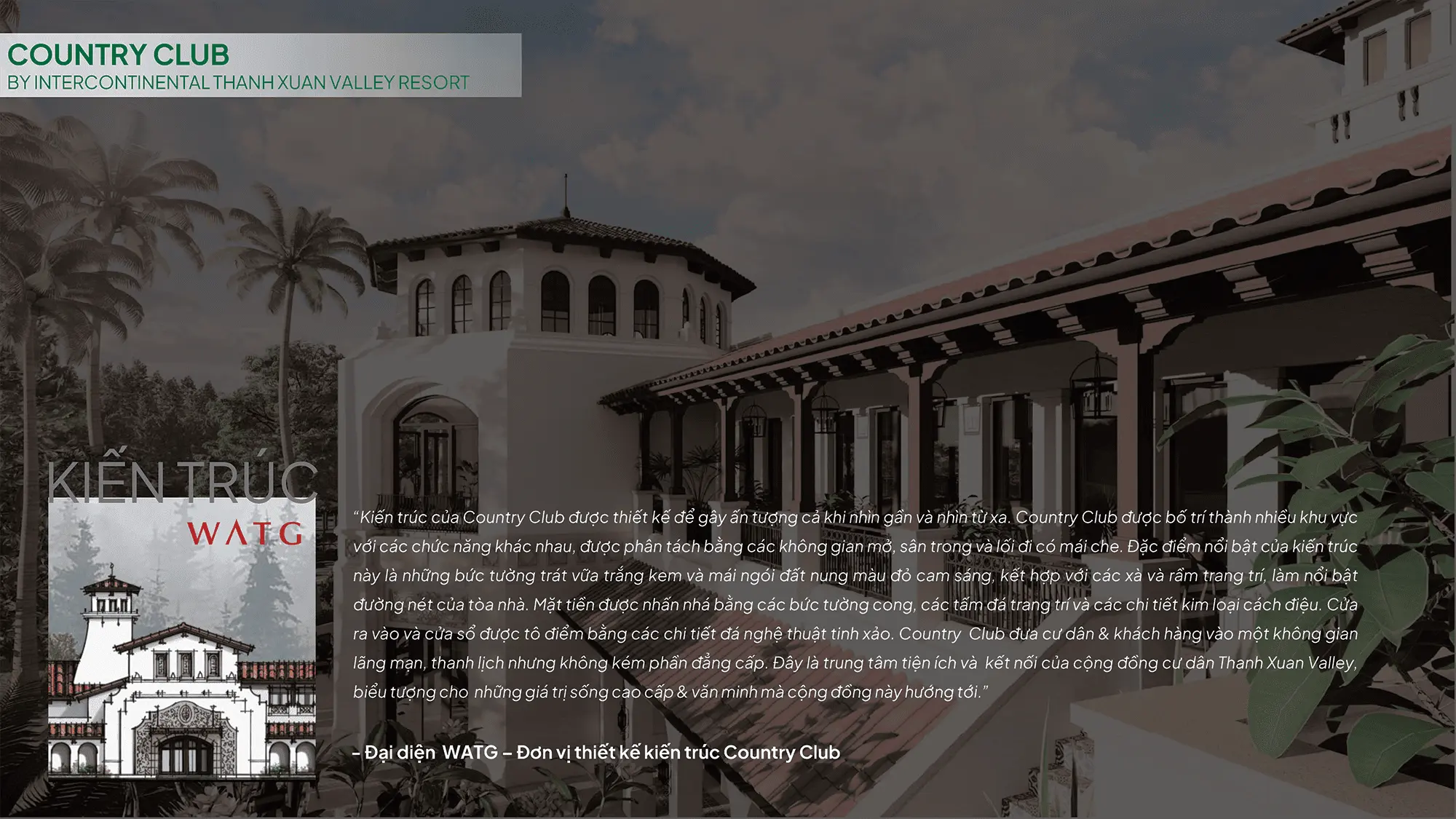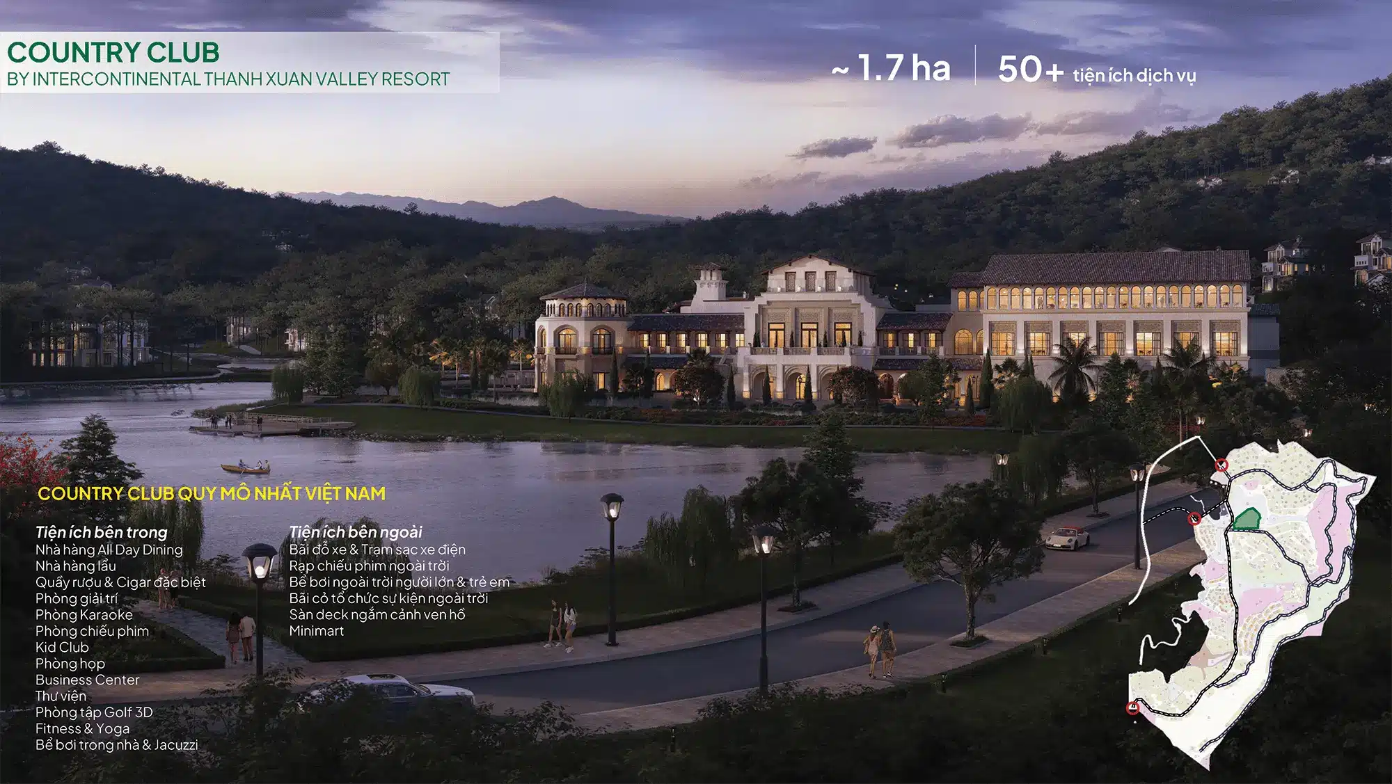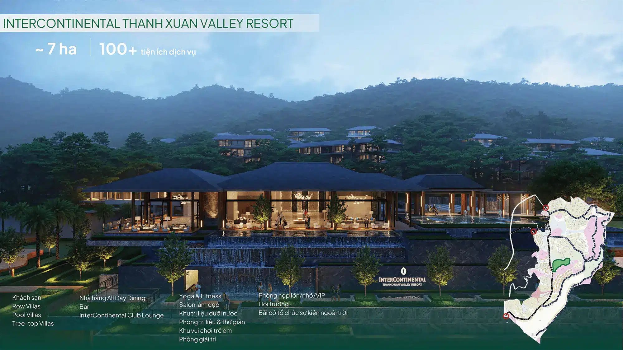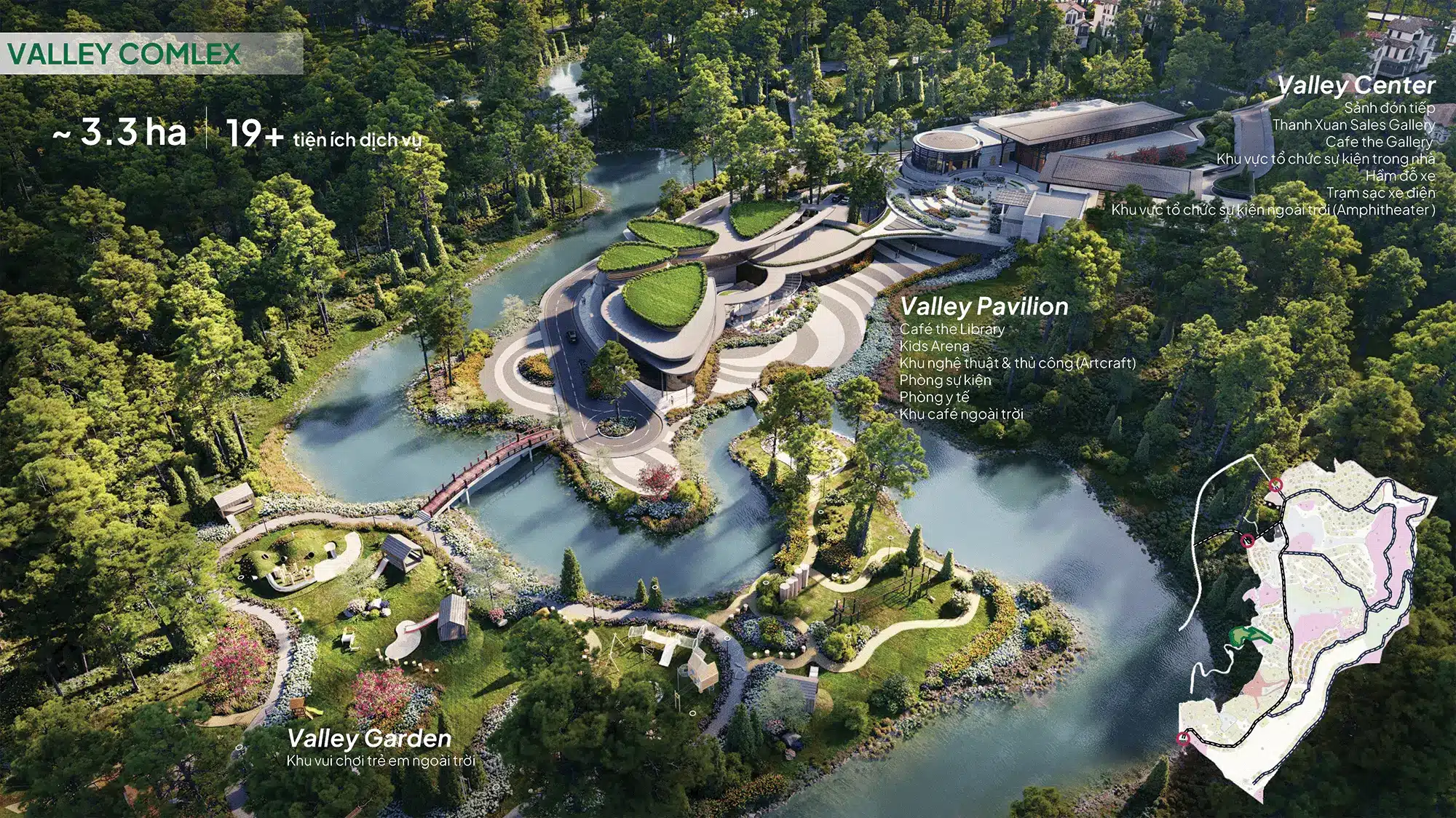Tổng thể mặt bằng được quy hoạch bởi WATG – đơn vị thiết kế hàng đầu thế giới, tạo nên một “thung lũng nghỉ dưỡng” đẳng cấp quốc tế, nơi thiên nhiên, kiến trúc và con người hòa làm một.